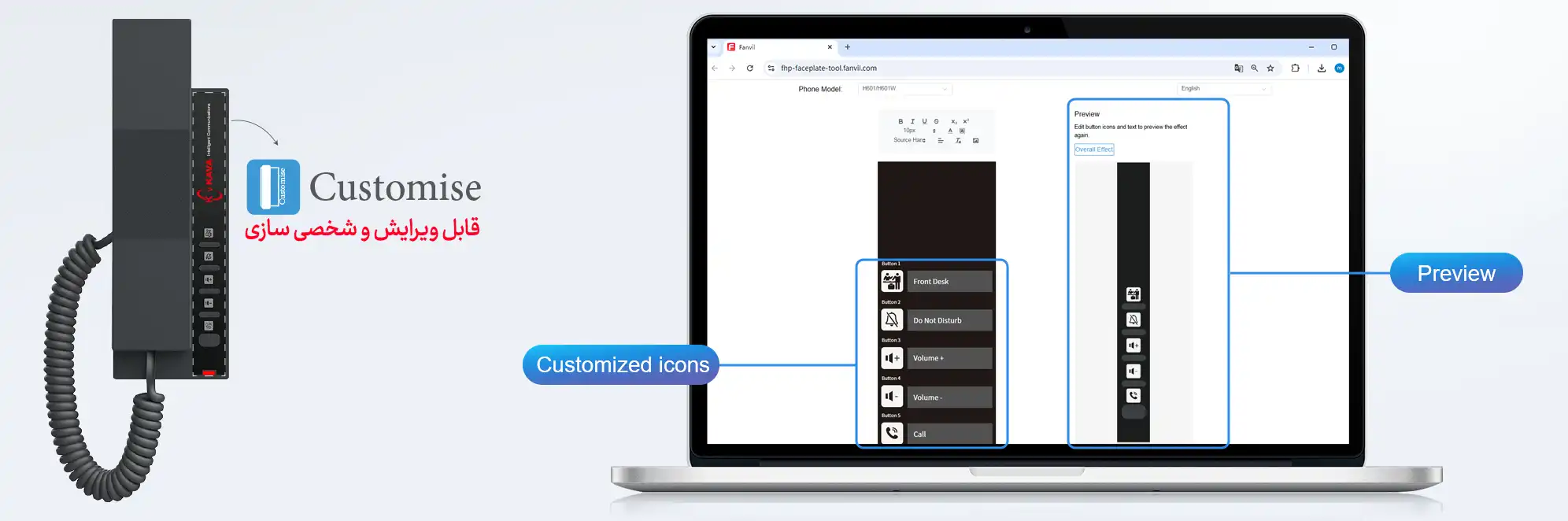معرفی و خرید Fanvil H601W Wi-Fi IP Phone: تلفن هوشمند و لوکس برای هتلهای مدرن تجربه اقامت در یک هتل پنجستاره با جزئیات آن تعریف میشود و خرید تلفن ویپ فنویل Fanvil H601W Wi-Fi IP Phone یکی از همان جزئیاتی است که سطح خدمات شما را متمایز میکند. این تلفن تحت شبکه (IP Phone) از سری حرفهای محصولات فنویل، با هدف ارائه تجربهای فراتر از یک تماس ساده طراحی شده است. Fanvil H601W ، نه تنها یک ابزار ارتباطی، بلکه یک پنل مدیریتی شکیل بر روی میز اتاقهای لوکس و سوئیتهای مدیریتی است که هماهنگی کاملی با دکوراسیونهای مدرن دارد.ویژگیهای برجسته و مشخصات فنی Fanvil H601W:وایفای داخلی (Built-in Wi-Fi)/کیفیت صدای HD/پشتیبانی از ۲ خط SIP/کلیدهای قابل برنامهریزی (DSS)/هندست مغناطیسی/صفحه نمایش سفارشی به دلخواه شما
